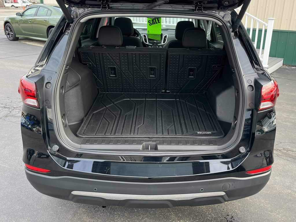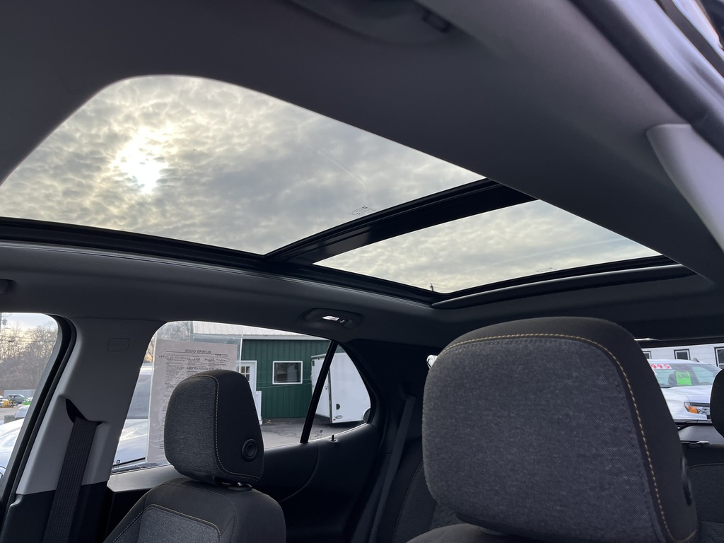 1.5L 4 cylinder Turbo engine, 6 speed automatic transmission, All wheel drive. Over $7,400.00 of factory options on this nicely equipped LT model. Options include Power windows, locks, seat, power liftgate and Panoramic Sun Roof. Remote start, Navigation, 18" Aluminum wheels, Adaptive cruise control, Heated front seating, Heated steering wheel and All weather floor liners. Front and rear park assist, blind spot warning, rear cross traffic alert and advanced safety package with HD surround vision. Complete service includes 4 NEW Uniroyal Touring Tires, Lube, Oil and Filter, New wiper blades. ONLY 21,000 MILES on this LIKE NEW Equinox!!!